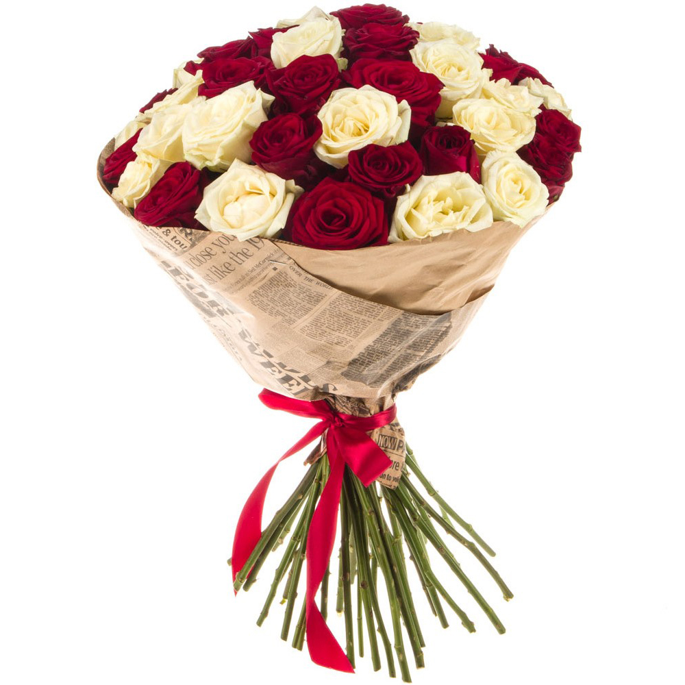 Букет из 45 красных и белых роз